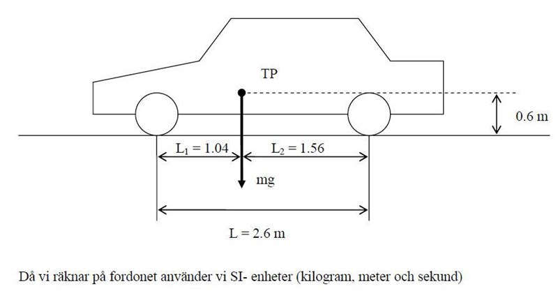 Eftersom bilen är framhjulsdriven är . Tänk också på att