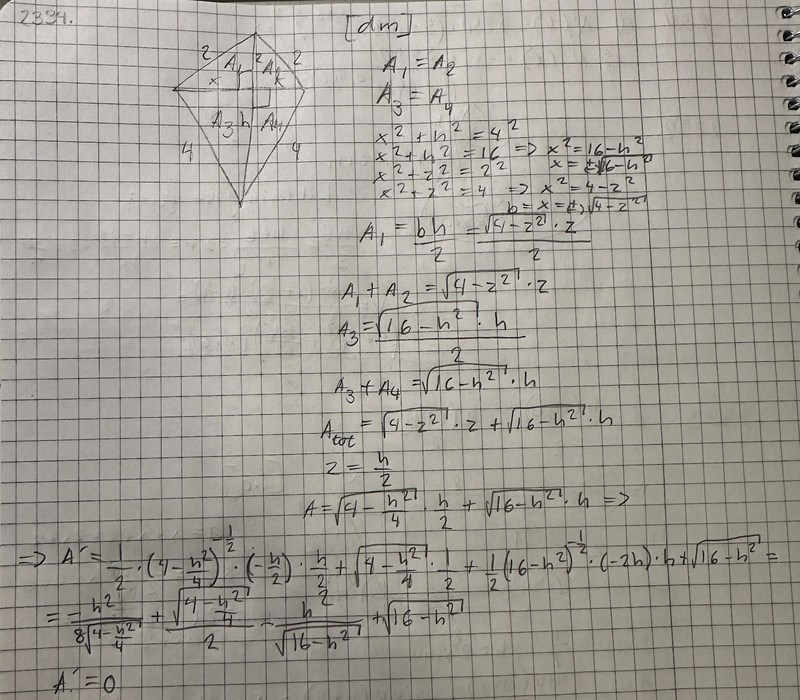 Jag kommer inte längre än så här. Stämmer areans ekvation och derivatan?