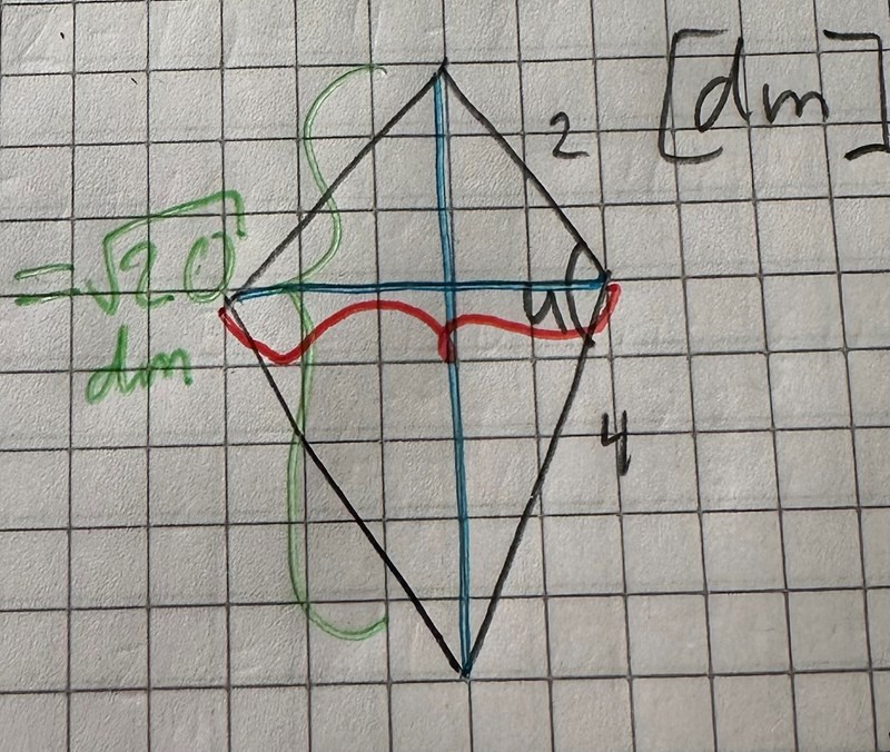 Nu kan du räkna ut den långa ”diagonalen” i korset: roten ur (4+16) = sqr 20