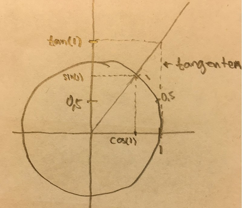 Med lite grovuppskattning så ser vi att sin(1)0,8; tan(1)1,4. (Verkliga värden c:a 0,84 och 1,56)