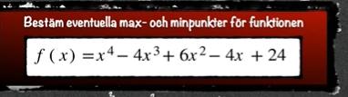 Du skrev där att f'(x) = 4x3-12x2+12x-4, vilket du faktoriserade till f(x) = 4•(x3-3x2+3x-1).