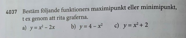 Om du har två punkter i en andragradsfunktion med samma y-värde kan du räkna ut extrempunkten eftersom parabeln är symmetrisk. Detta kan du göra genom att hitta punkten med ett x-värde som är mitt emellan de punkter du använt.