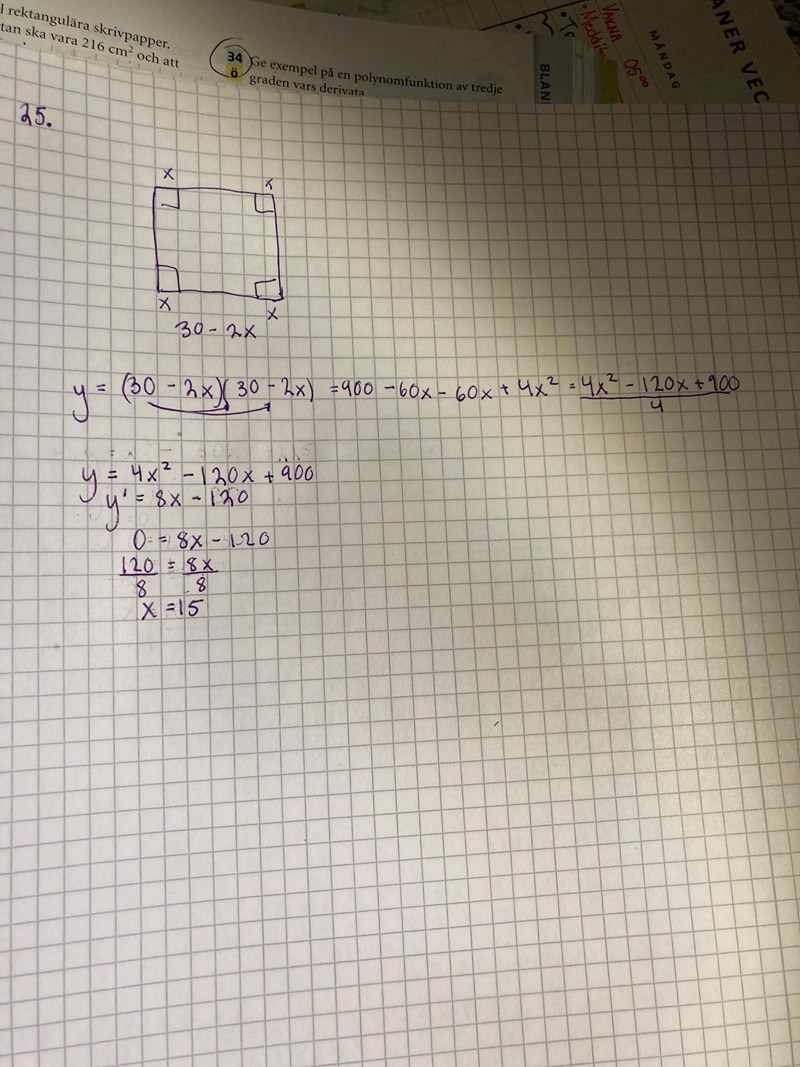 När du viker upp de fyra kanterna blir höjden på lådan lika med .