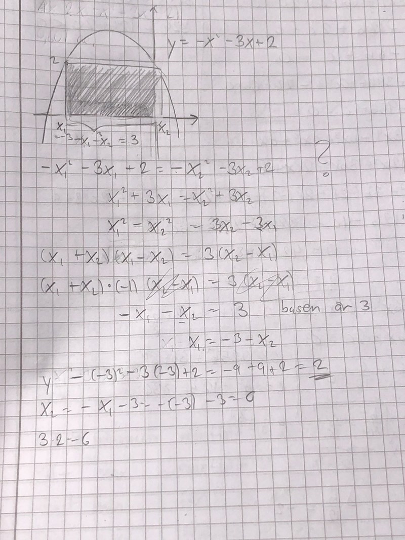 För att det ska vara en rektangel måste det pga symmetri gälla att f(x1) = f(x2), vilket åven är rektangelns höjd.