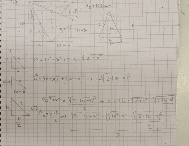 Jag försökte göra ett uttryck för arean men det ser ut som att jag har misslyckats. Hur ska man tänkte?