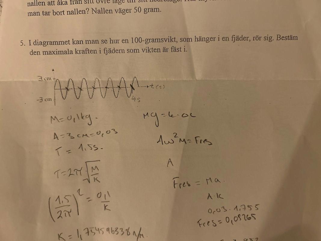 Jag får 1.03newton vilket är samma som jag fick innan, tror du det kan vara fel i facit eller?