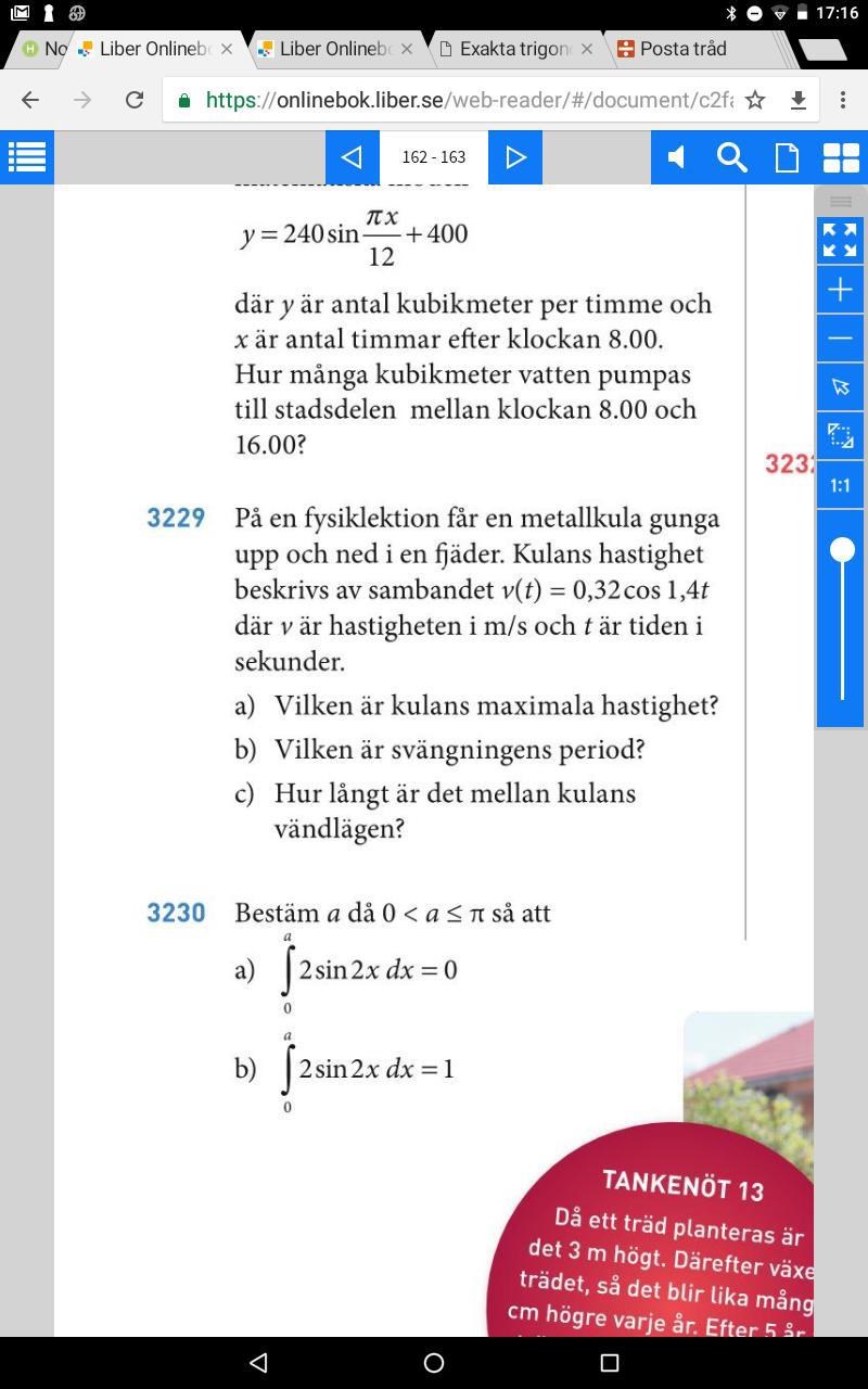 Hej, jag behöver hjälp på uppgiften 3229a,( se nedanför). Jag har kommit fram till att t=0+n*4,49 men nu vet jag inte hur jag kommer vidare..