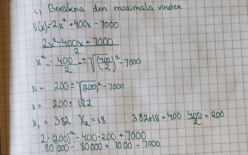 Du kan utgå från uttrycket som gavs i c-uppgften. Är du med på att det beskriver vinsten V som funktion av priset x?