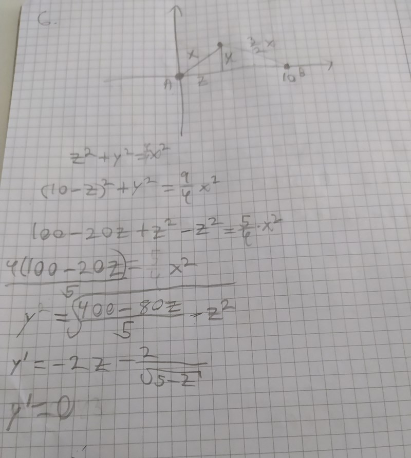 Ett problem är att det uttrycket inte ser ut att stämma. Prova att maximera y2y^2 i stället, det är enklare och går lika bra.