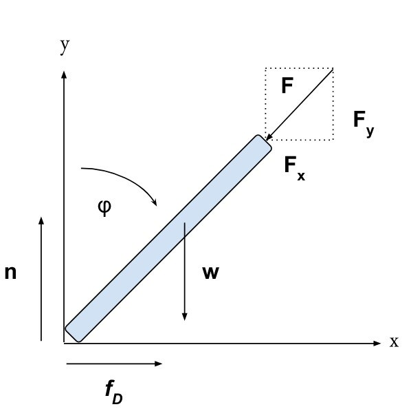 Jag har försökt beskriva krafterna, men kommer ingen vart vad det gäller att få ett uttryck för längden av sträcket pennan målar. Jag vill få en ekvation som beror på längden av pennan, vikten av pennan, friktionskoefficienten mellan penna och papper samt vinkel (tror jag).