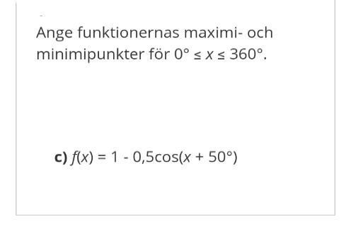 I facit står det att maximipunkten är (130°, 1.5) och minimipunkten är (310°, 0.5).