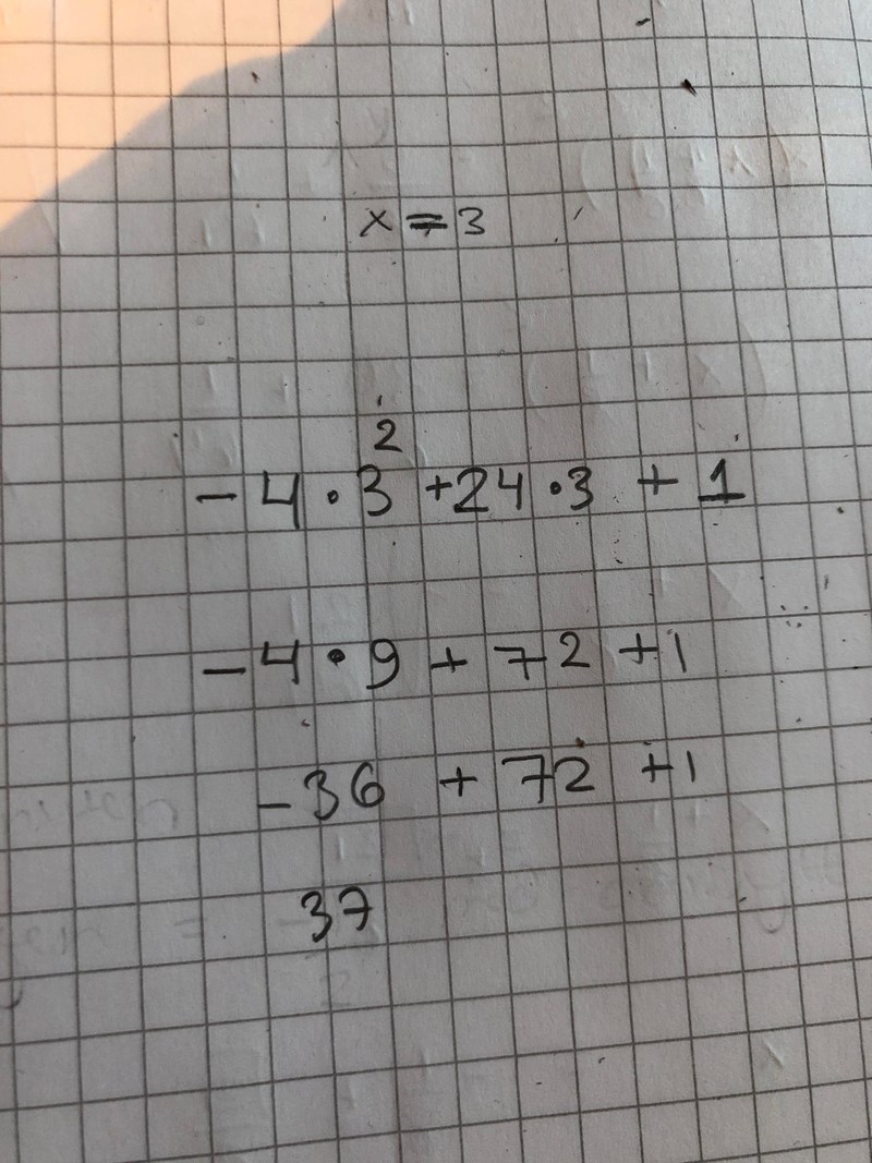 GeoGebra visar att x=3 ger y=37. Jag förstår inte vad det är du frågar om.