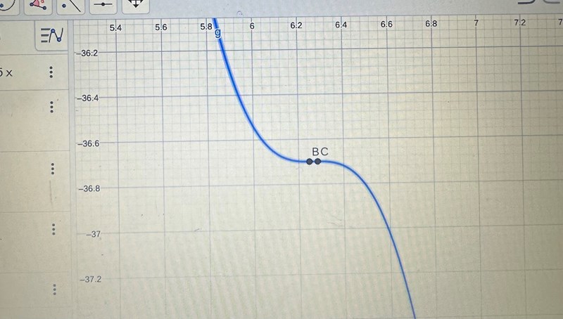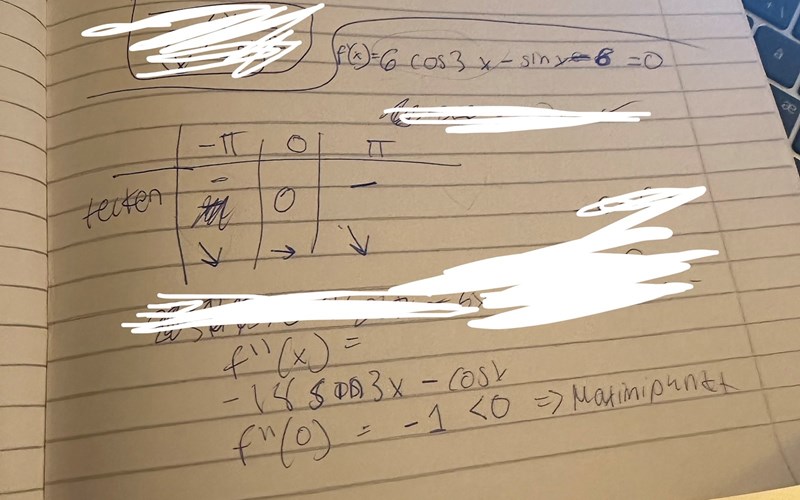 Hej när jag skriver in funktionen i geogebra visar det inte att det blir en maximipunkt vid x=3. När jag använder teckentabell får jag att det blir en teradspunkt så som jag visat nedan, men när jag använder andraderivatan får jag en maximipunkt? Vad är det för fel jag gör?