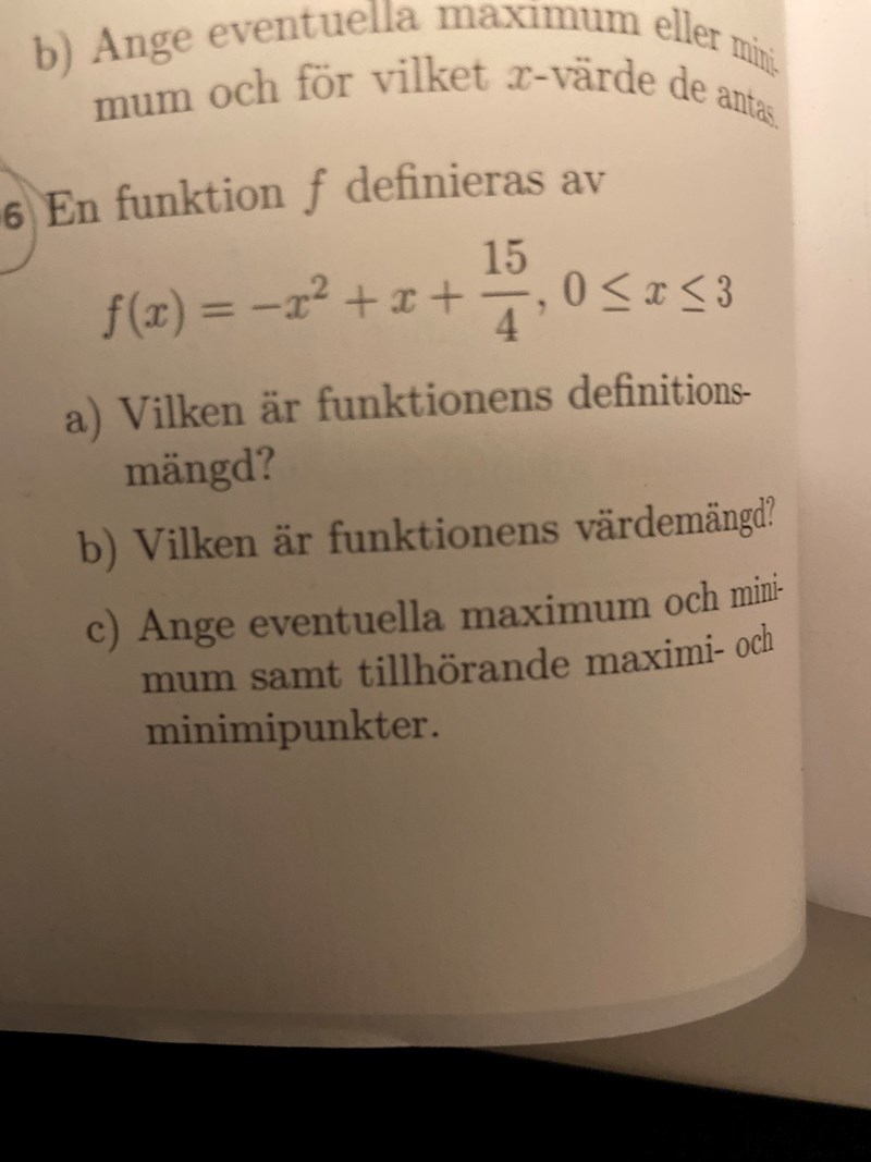 Jo, men i den här definitionsmängden får x som minst vara 0 och som störst 3. Så borde jag inte stoppa in dessa värden i funktionen för att få fram värdemängden?