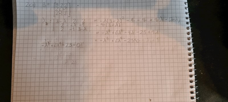 Dock blir det karakteristiska polynomet lite jobbigt att lösa för hand så misstänker att de vill man ska använda en annan metod.