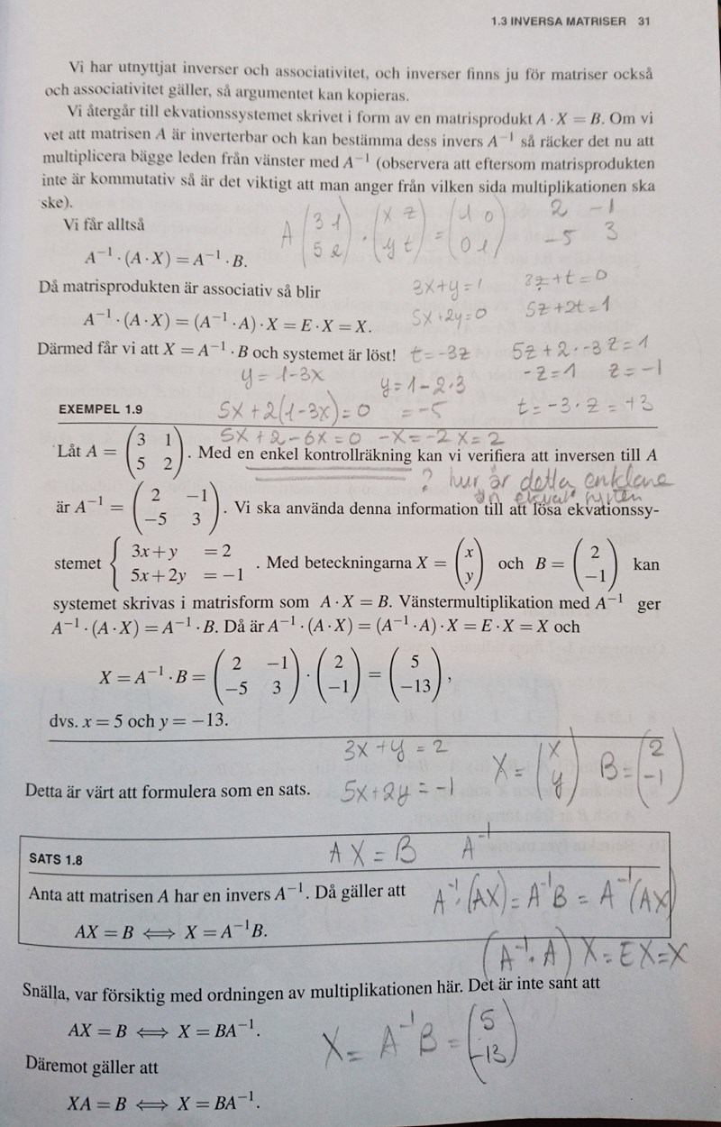 Det är sällan man (i alla fall jag) löser ekvationssystem med matrisinverser.