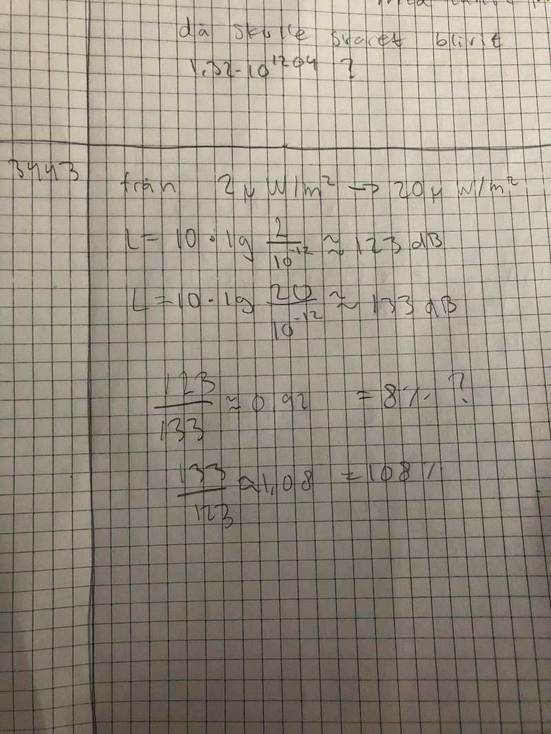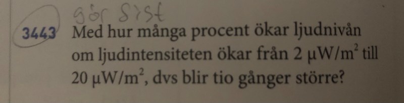 Med hur många procent ökar ljudnivån? Uppgift 3443 liber ma2c