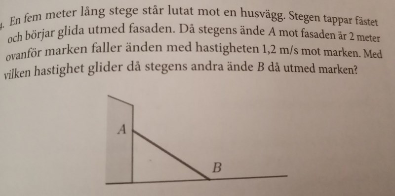 Med vilken hastighet glider då stegens andra ände B då utmed marken?