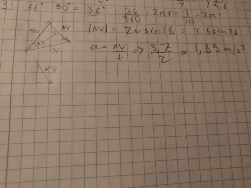 Vi vet inte om det är en ren cirkelbåge, så man ska nog inte blanda in r alls. Jag skulle räkna ut x- och y-komponenterna för start- och slutvektorn, och sedan subtrahera vektorerna. Och sedan dela med tiden.