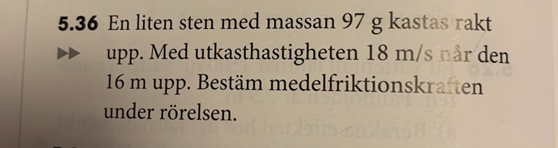 Eftersom energi = kraft gånger sträcka så kan du sedan beräkna medelfriktionskraften på vägen upp.