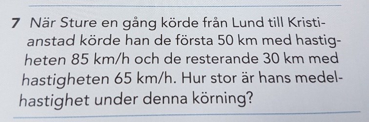 Den totala sträckan blir 80km, och jag vill dela detta med tiden för att beräkna medelhastigheten.. men är inte med på hur jag beräknar tiden för delsträckorna? När jag tittar på uppgiften känns det inte som den borde vara så värst svår att lösa, men vet inte vad det är jag har missat som gör att jag inte kan lösa den.