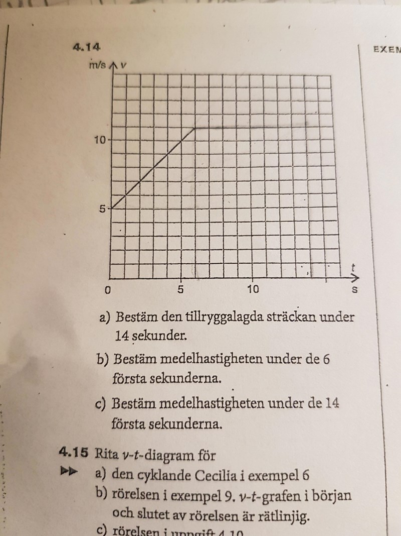 Använder formeln medelhastigheten v och får i både b och c att v=0.5(vi+vf)=8m/s, men det är bara svaret i b). Vet inte hur jag ska få ut c). Vet att jag måste använda typ v=s/t eftersom accelerationen ej är konstant.