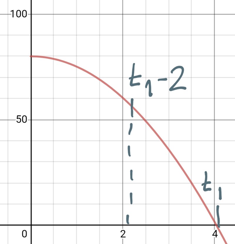 Två sekunder innan föremålet träffar marken är tidpunkten 4,2 - 2 = 2,2 eller hur?