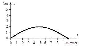 Från tiden 0 till 5 minuter så färdas cyklisten i en riktning och kommer som längst 2km från starten. Här vänder hen och cyklar tillbaka samma väg.