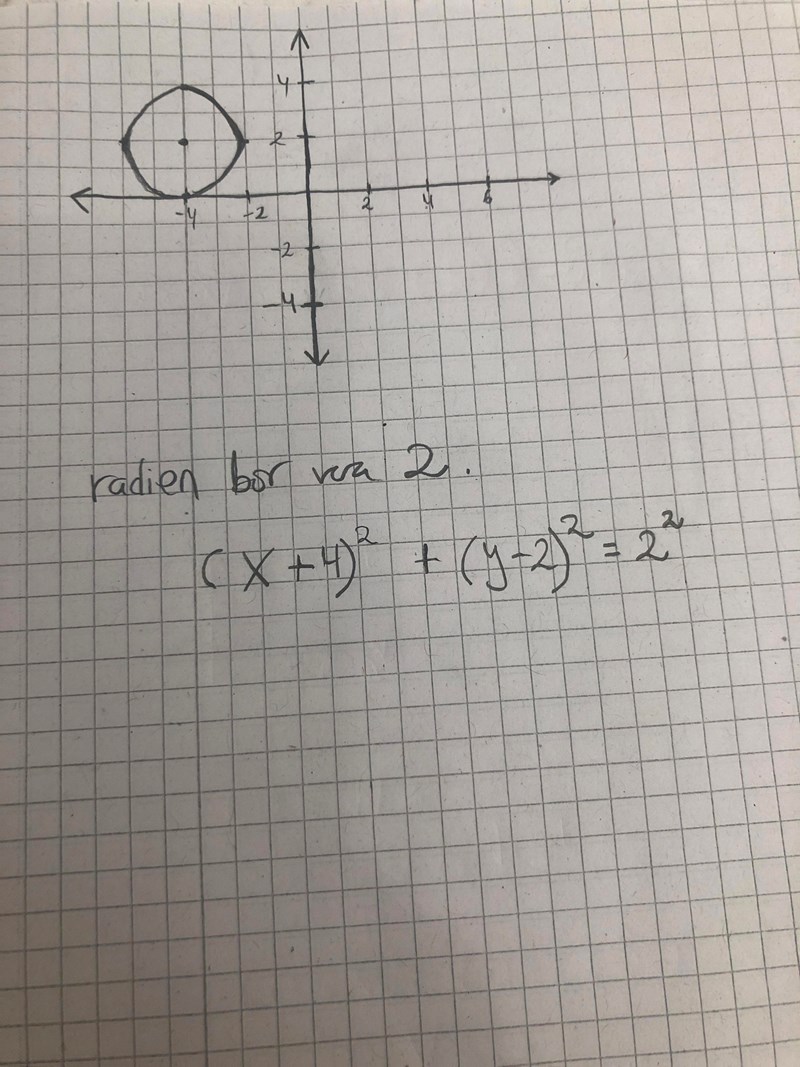 Och i d. Så ska det vara så här, att cirkelns radie bör tangera kordinaterna (0,0). Alltså