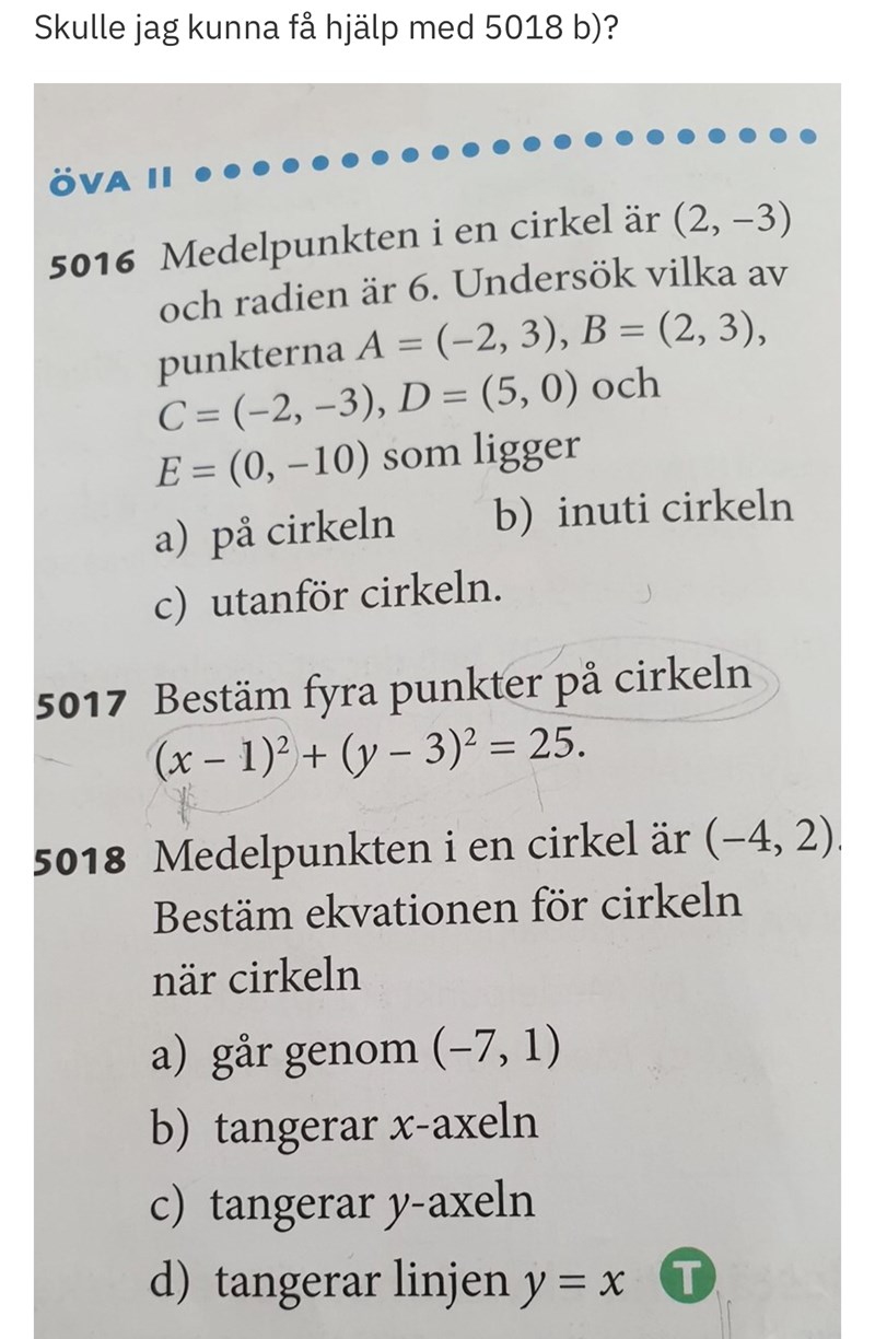 Medelpunkt i cirkel 5018. Är lösningen rätt