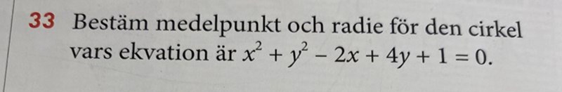 Detta skall jag  försöka skriva om som en kvadrat (för att det skall vara som ekvationen för en cirkel).
