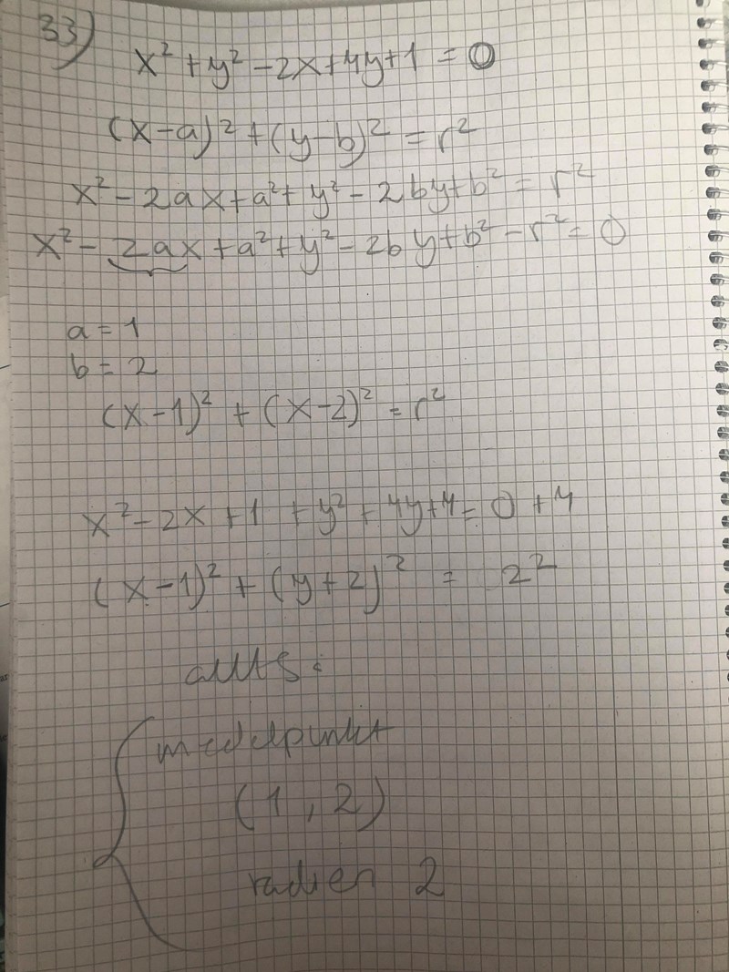 I medelpunkts koordinaterna (a,b)? Ska det inte vara 2?