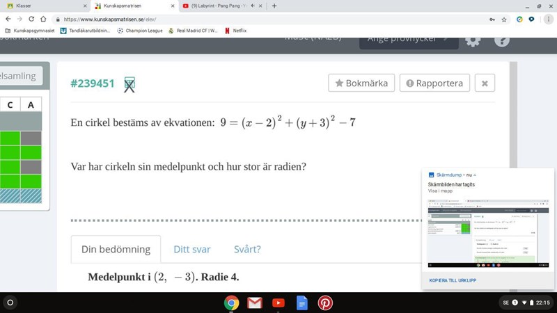 Har du kommit fram till rätt svar vad gäller medelpunkten?