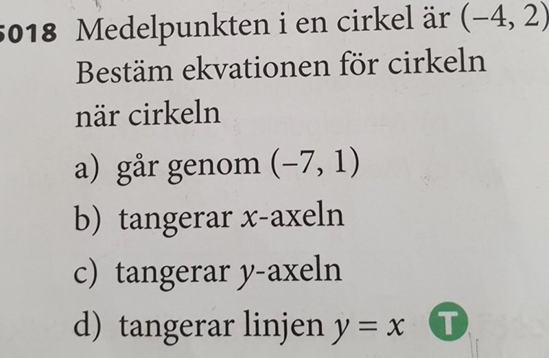 Du ska bestämma r så att cirkeln ska tangera x-axeln. Det kan hjälpa att rita en bild.