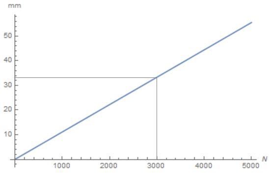 Notera F = 3000 [N]. Enhetsanalysen avslöjar längdenheten.