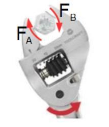 I så fall...varje skruv mottar halva momentet från F och vi får kraften på varje skruv: