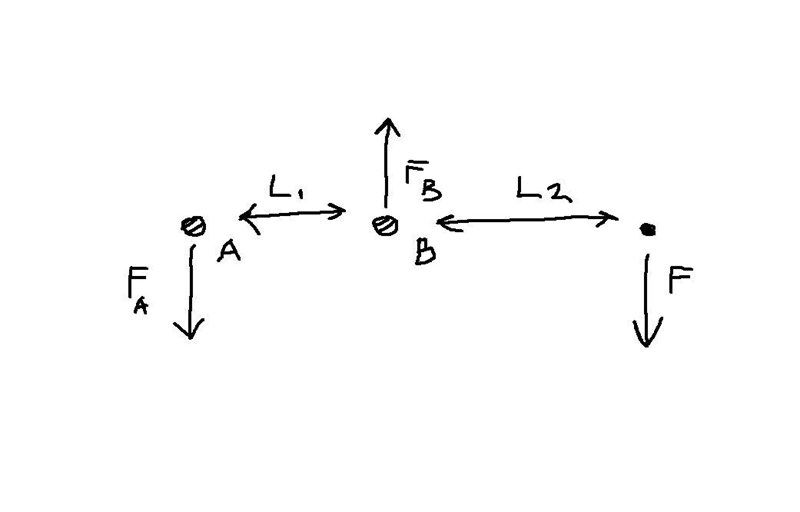 Det som återstår för att lösa uppgiften borde då bara vara att ställa upp jämviktsekvationerna i vertikalled och sätta momentet lika med noll kring A eller B, då borde du få ut krafterna vid A och B. Sedan borde man kunna beräkna skjuvspänningen vid A och B och titta vilken punkt som ger störst värde, jämföra det med hållbarhetskriteriet och få fram något värde på F.