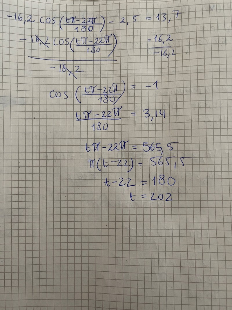 Så -16,2*cos(x) kommer vara störst när cos(x)=-1b)
