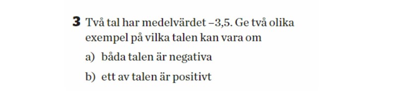 Att två tal har medelvärdet -3,5 betyder att de ligger på var sin sida och lika långt från talet -3,5.