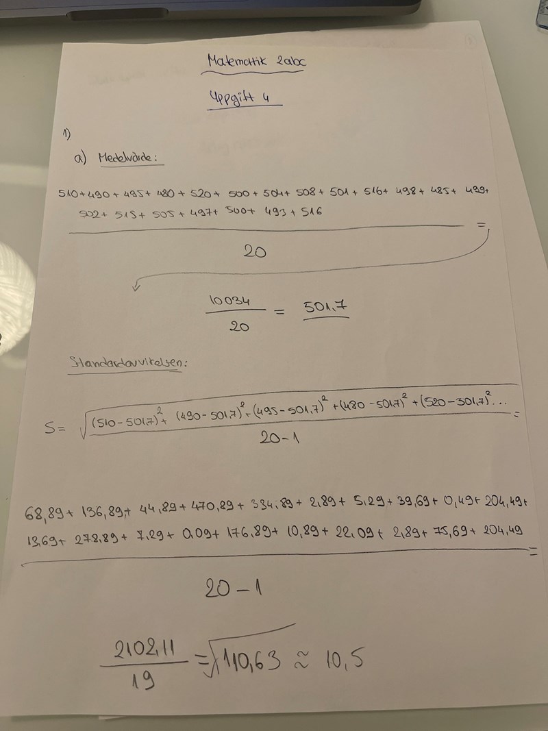 Det står utifrån Almas beräkningar men här finns inga beräkningar. Och förstår inte varför standardavvikelsen ändras då?