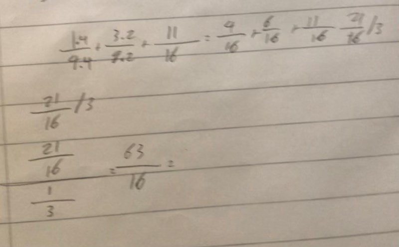 Jag försökte lösa uppgiften men jag fick fel svar, jag fick 63/16 men den rätta svaren är 7/16.