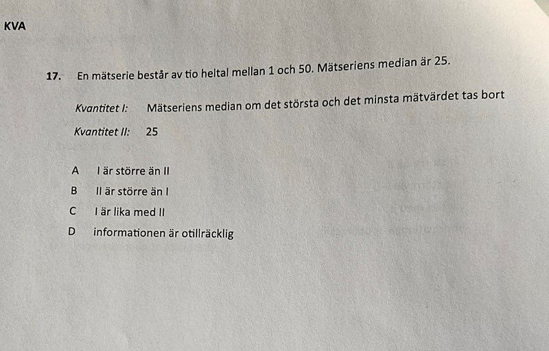 Jaha, medianen är den mittersta talet och de blir ingen skillnad om högsta och lägsta talet försvinner för att de är fortfarande mittersta talet