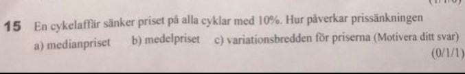 Fundera på hur medianen påverkas om alla värden höjs med 10 %, lika mycket.