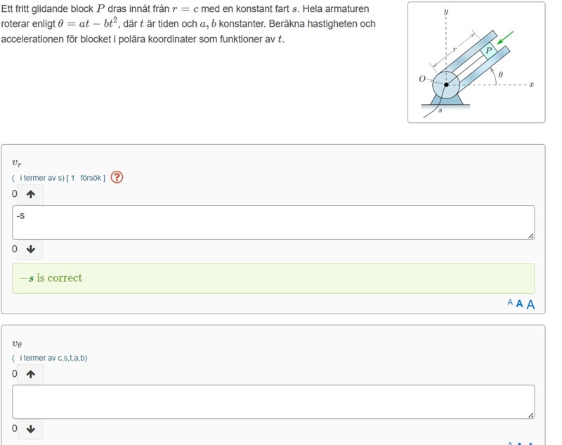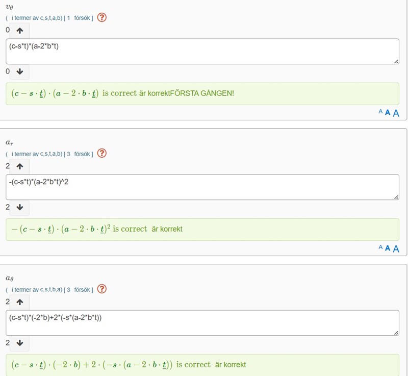 Jag fick då att vθ=c(a-2bt) men då saknar jag s.
