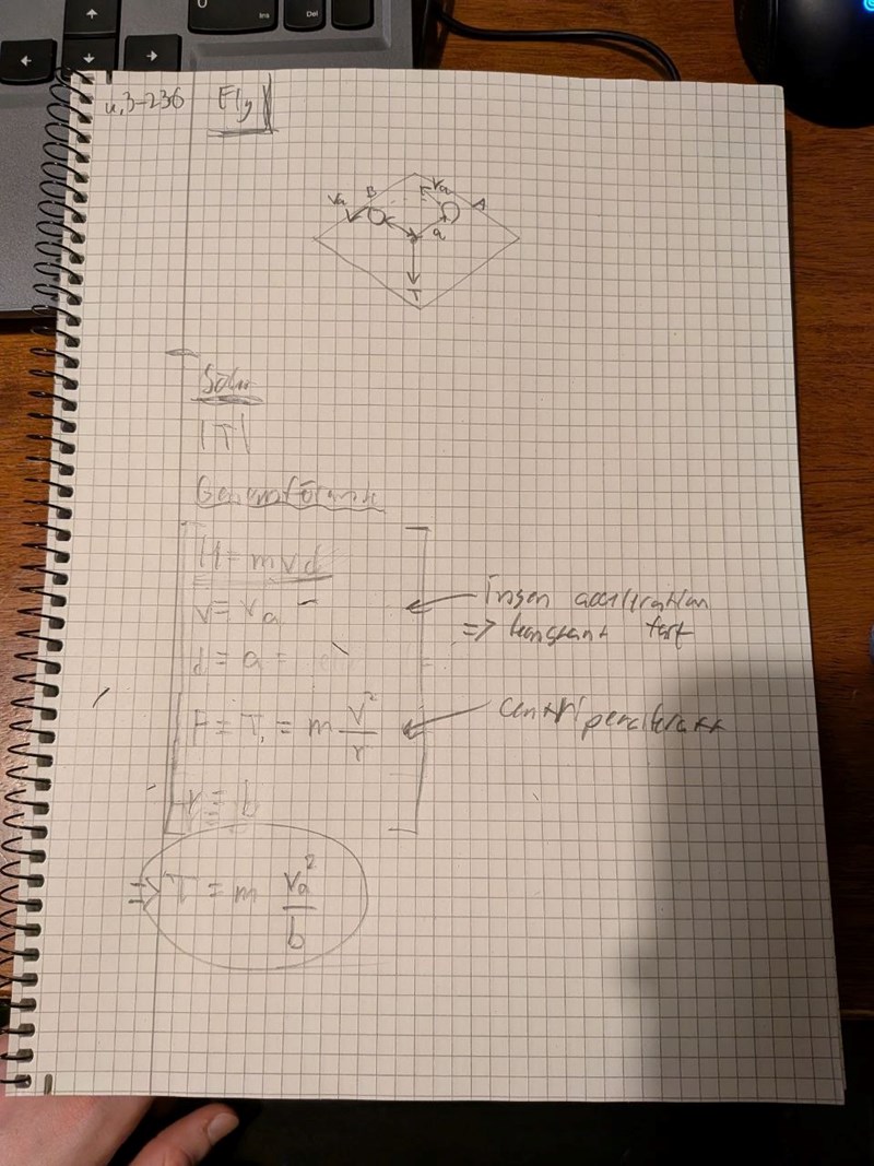 Sedan gäller det att TB = m. Där är krökningsradien i B - obs den är inte b.
