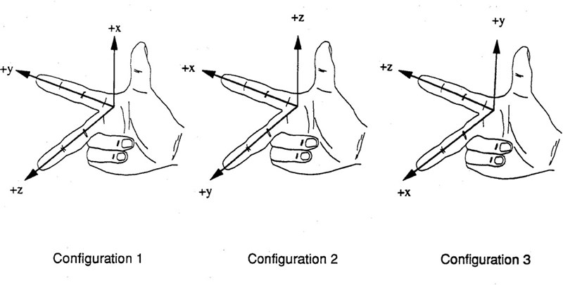 Edit 2: Men det är konstigt fortfarande. Detta går väl inte att göra med mina fingrar eller får mina fingrar nya beteckningar? Om mina fingrar är som på bilden, jag vrider min hand moturs, nu så pekar y mot andra hållet (alltså -x) och då får vi en ny bas/koordinatsystem?
