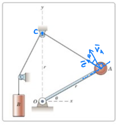 Jaha vänta först så identifierar man vad det är för typ av rörelse, radien är konstant men den följer cirkelrörelse, ska man då använda sig av enhetsvektorer i polärt koordinatsystem. Dock ska inte vA vara vinkelrät eller i alla fall e, för att det ska funka
