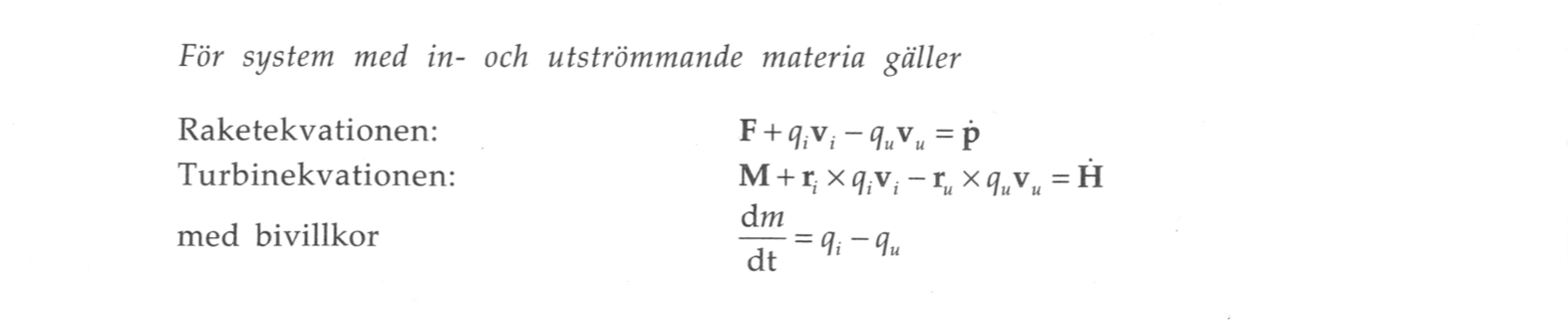För ett system med in- och utströmmande materia så finns det olika former av raketekvationer. Tex