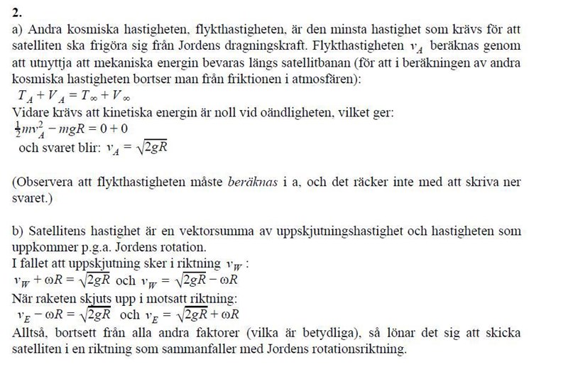 Hej har denna tenta fråga som jag inte riktigt förstår hur man skall tänka. Ser i facit att de sätter V och T till 0 i a) uppgiften men fattar inte varför de kan göra det och i texten står de i facit att den kinetiska energin måste vara 0 men de sätter även den potentiella till noll varför kan man göra de? Sen om någon kan ge mig ett tips på b) uppgiften hur man skall börja tänka skulle verkligen uppskattas. Nedan kommer bild på uppgiften sedan bild på facit.