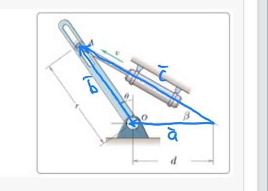 Det som är lite otydligt i patenterameras lösning (tog mig, med min sega hjärna, lång tid till att förstå) är att hen sätter upp en (vektor)ekvation för punkten/vektorn A med origo i O först uttryckt i d (VL) och sedan i (HL).